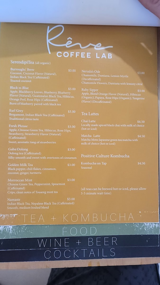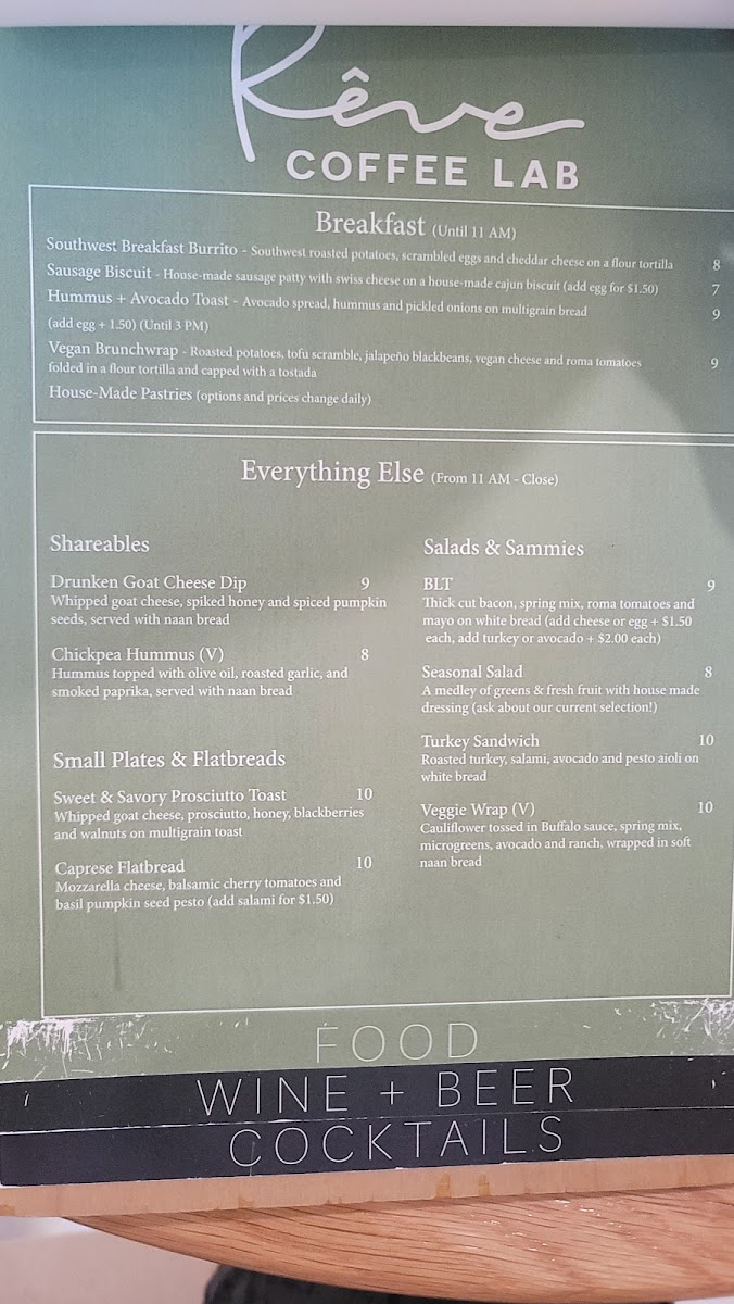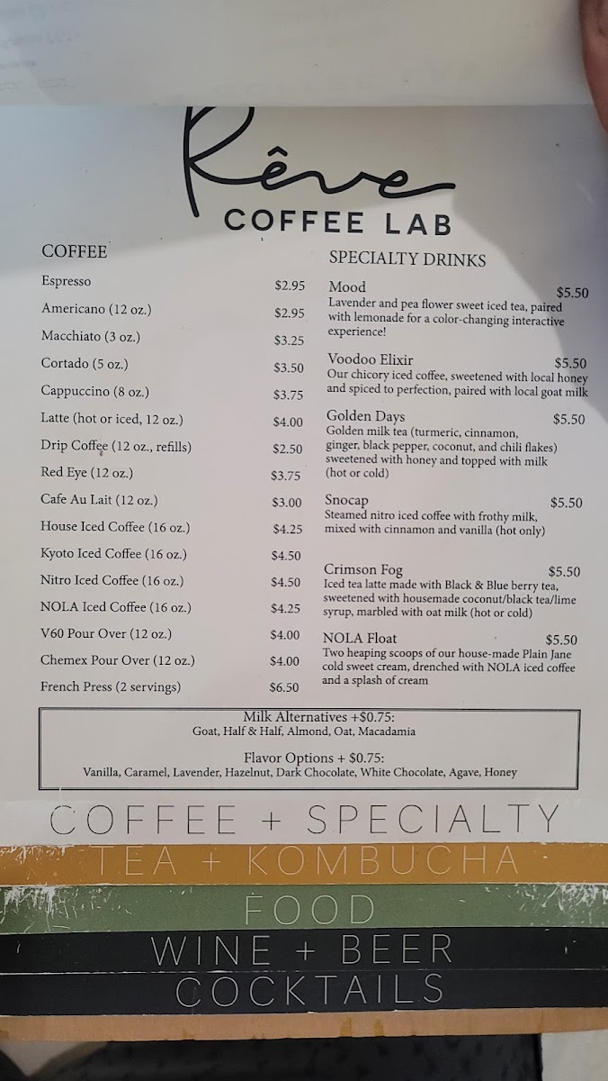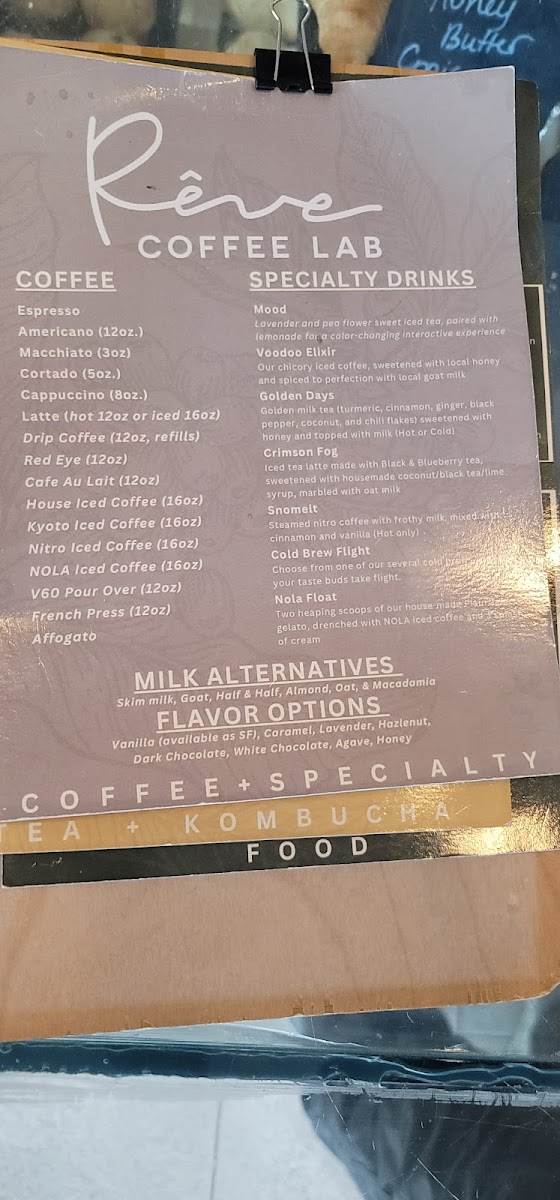 Rêve Coffee Lab BTR Menu